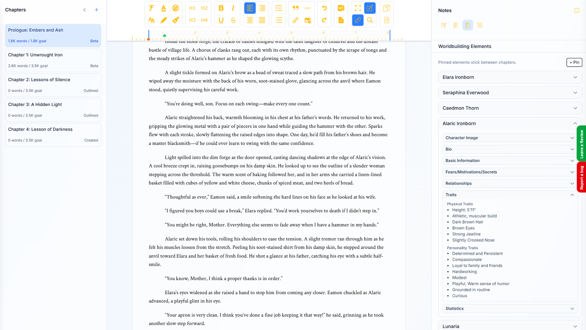 - Integrated with worldbuilding and beta reader feedback out of the box.